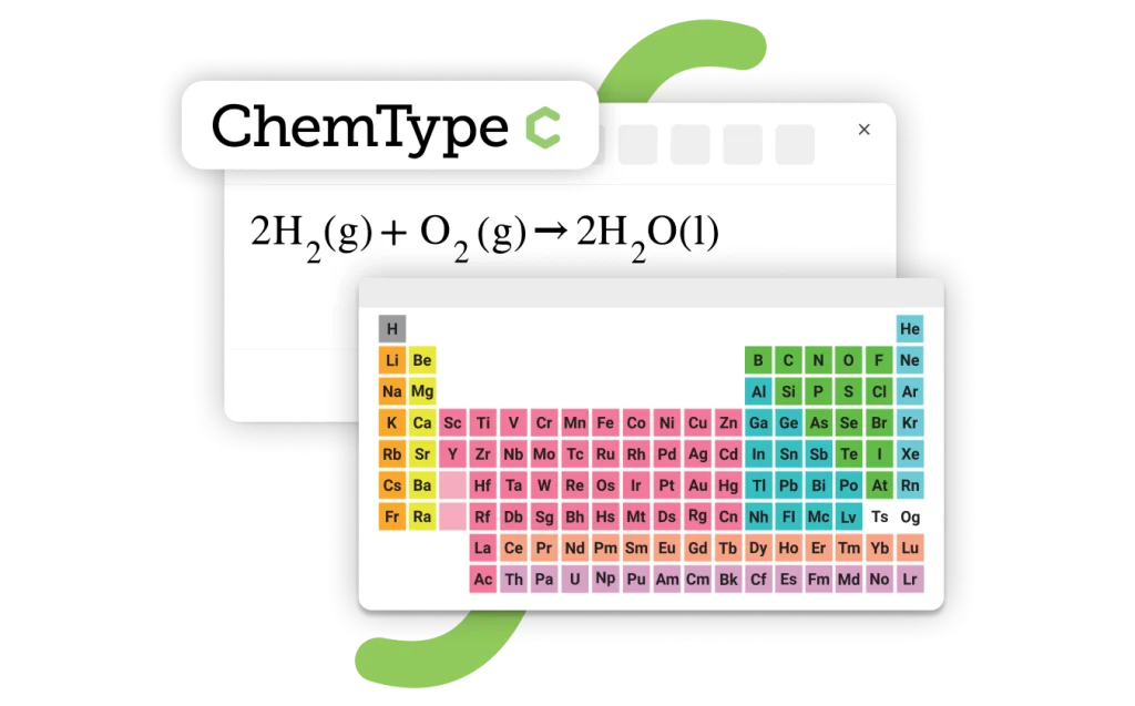 Switch seamlessly between math and chemistry notation with ChemType, the built-in toolbar equipped with chemical buttons to create formulas.