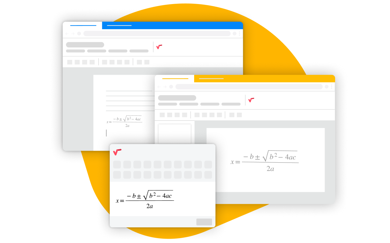 MathType is presented as a Google Workspace add-on, so you can add math and/or chemistry content without leaving Google Docs or Google Slides. Just type or handwrite the equation that you need on your document within the MathType editor window and it is inserted into your document. Edit your equation as many times as you want just by clicking on it and going into MathType again.