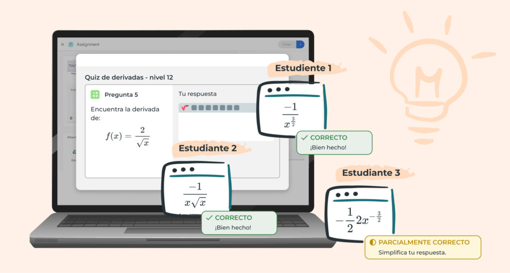 - Reconocimiento de respuestas abiertas: evalúa respuestas más allá de las opciones múltiples, incluidas las expresiones algebraicas.
