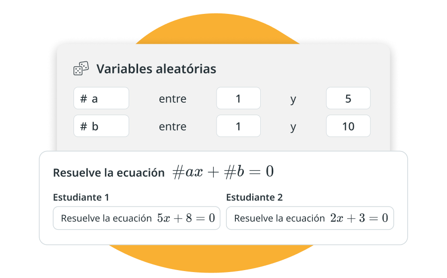 Utiliza variables aleatorias y lógica programable para generar miles de versiones únicas a partir de una sola pregunta, garantizando que cada estudiante reciba una versión diferente del problema. Esto reduce el plagio, escala la creación de contenido y permite una práctica ilimitada.